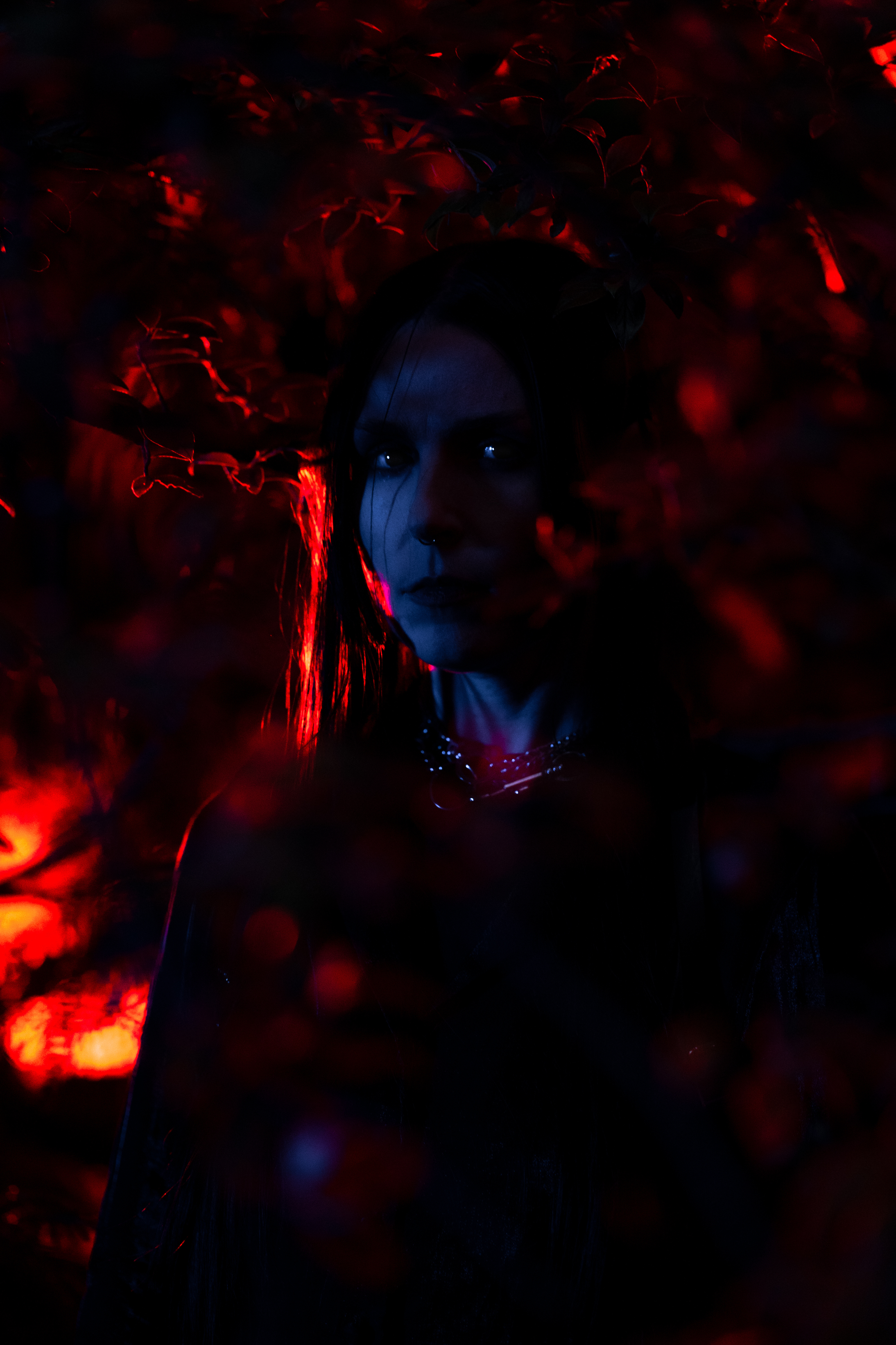 Erin perched an LED on a cool rock in the damp remnants of a stream. The darkness had risen up and the red light was flooding the trees, casting an unearthly glow into the quiet branches. “You look like you’re auditioning for the fucking Matrix,” they deadpanned while taking test shots, cracking me up.